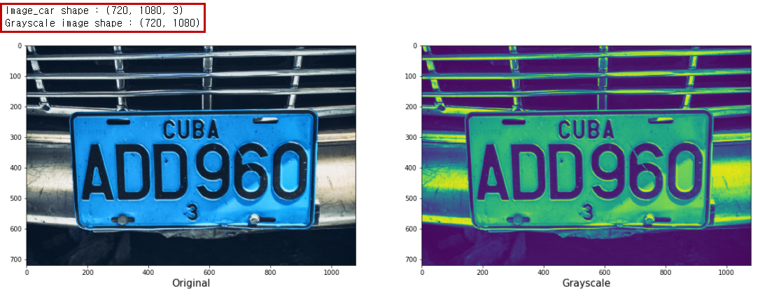 이미지를 grayscale로 변환하는 함수를 작성해보겠습니다. OpenCV에서 이미지의 색상특성을 변환하고자 할때는 cv2.cvtColor() 함수를 사용하면 됩니다. Grayscale로 바꾸려면 함수의 파라미터를 cv2.COLOR_BGR2GRAY를 입력하면 됩니다. 색상 변환과 관련되 더 자세한 사항은 링크를 참조해주세요.